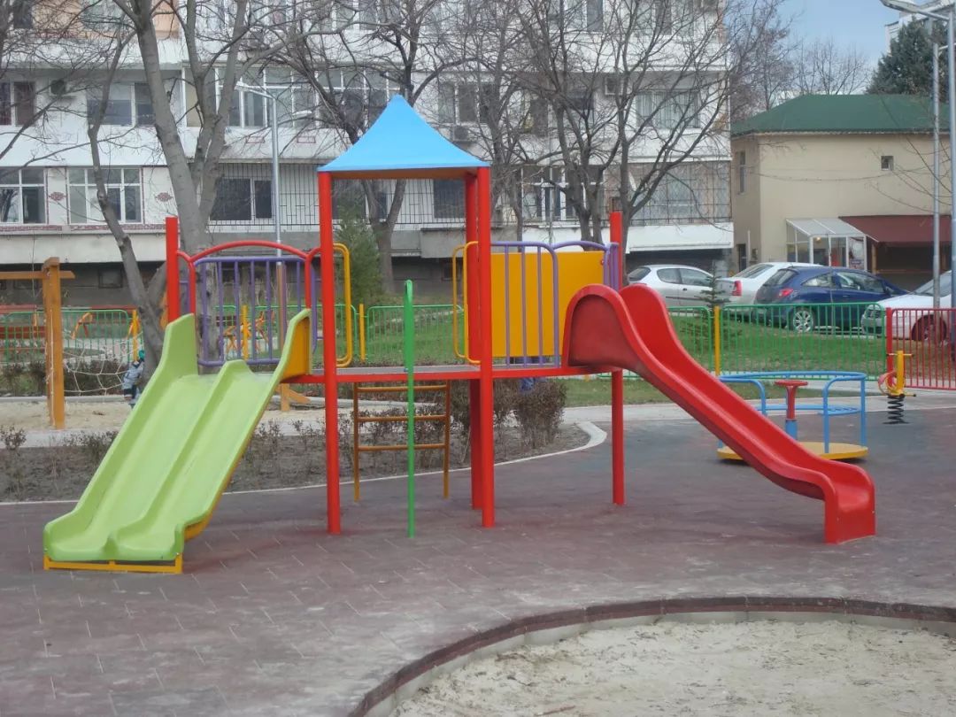 1、滑梯:在社区滑梯上游戏滑行